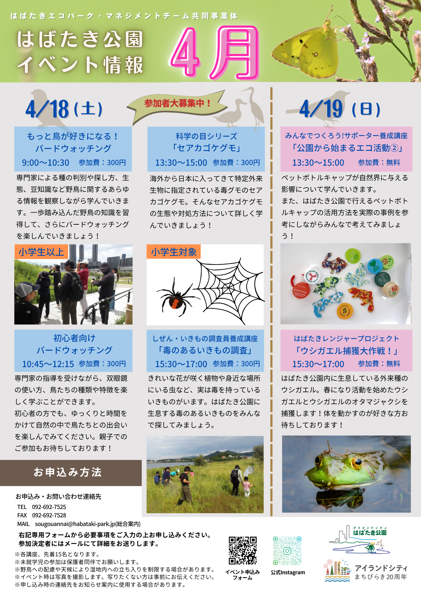 | 問合せ・申込先 | アイランドシティはばたき公園 Mail: sougouannai@habataki-park.jp Tel : 092-692-7525 |