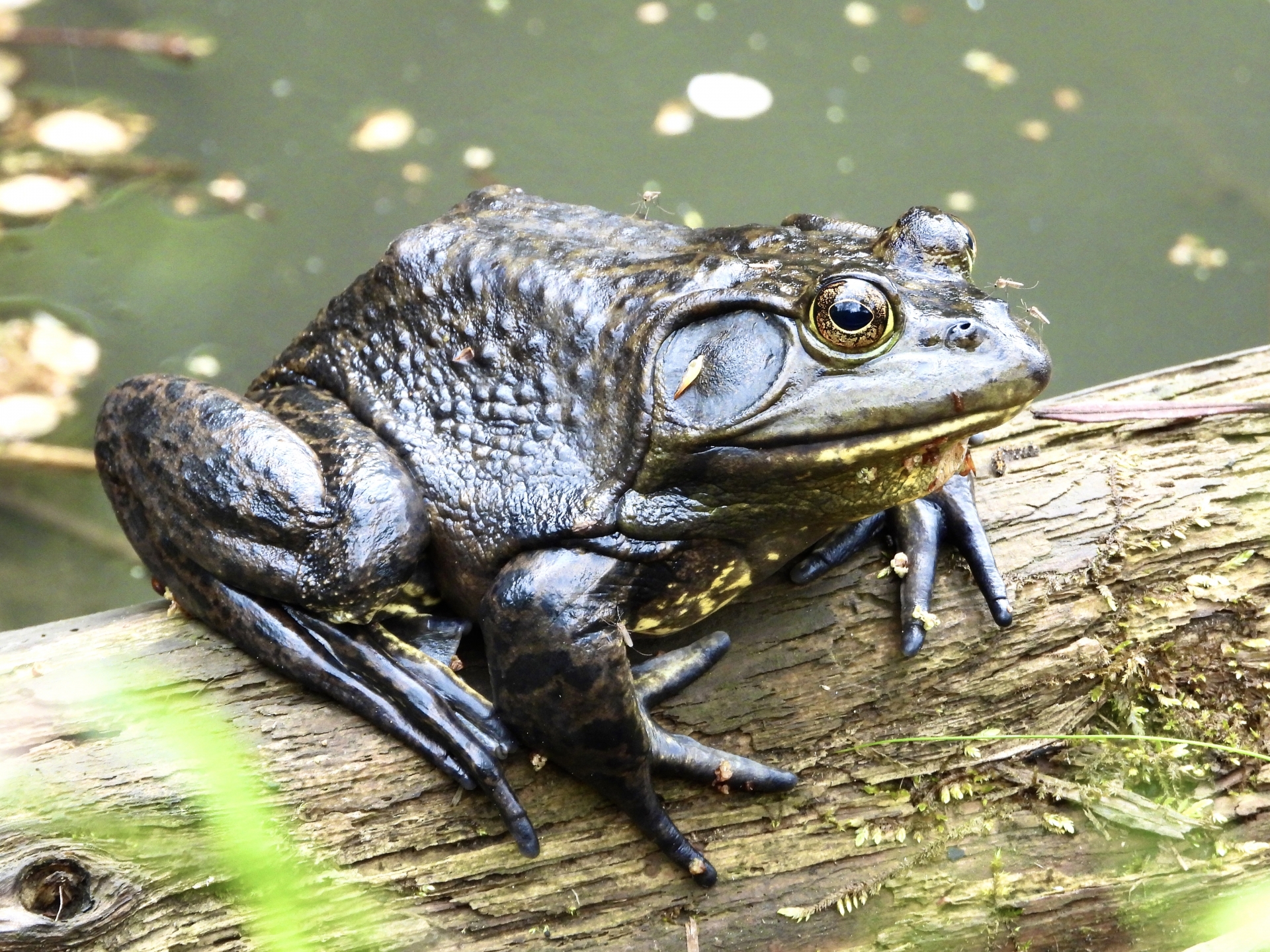 成体は大きいものだと体長18cm、幼生(おたまじゃくし)ですら15cmにもなる大型のカエルです。池や沼などに生息し、オスは浮きながら「ウォーウォー」とウシに似た鳴き声を出します。